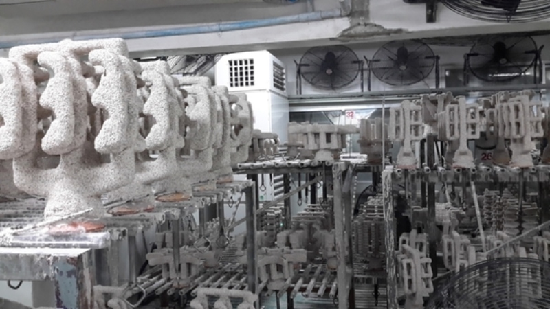 A replica of the part to be casted, is created using wax which is called as wax pattern. Later, all patterns will be assembled on a runner to form a wax tree assembly. Multiple coats of refractory ceramic material are applied on a wax tree assembly. Upon drying of ceramic coating, wax is drained out of the coating by melting it and a ceramic shell is formed. Ceramic shell is heated upto certain temperature to achieve shell hardness and remove left-over wax.