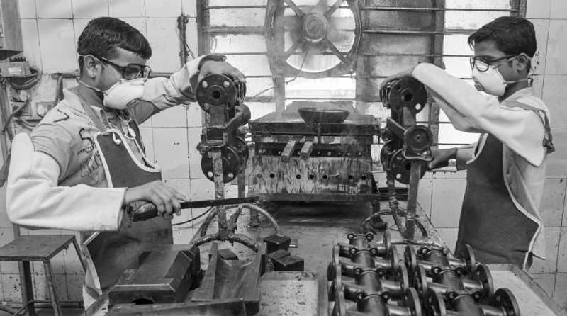 The investment mould is then placed open-side i.e cup side up into a sand bed and then the molten metal is poured in a hot shells which are pre heated in a shell baking furnace. After Pouring the metal shell are send to fettling section for finishing of the castings.